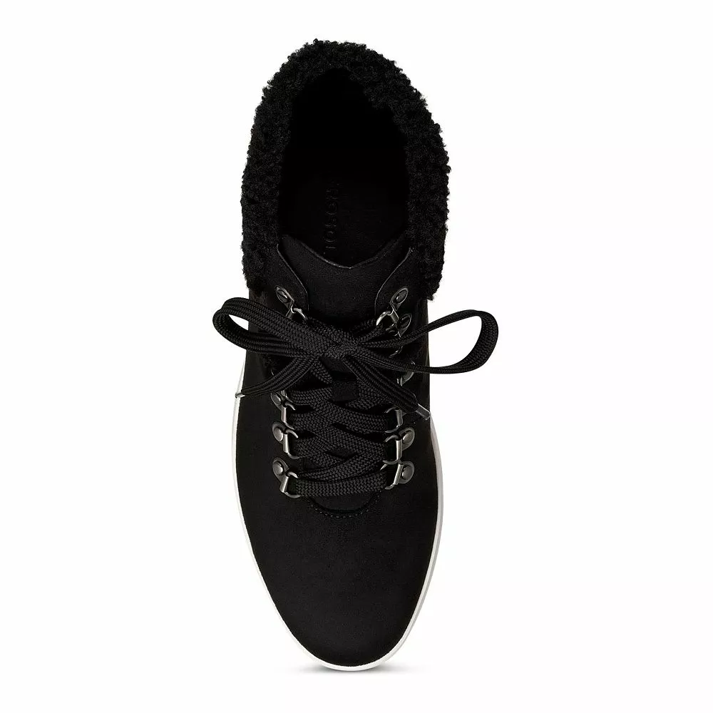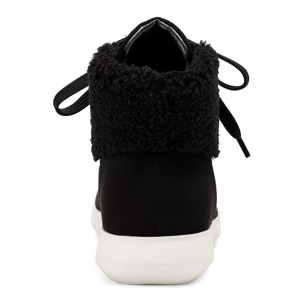 - Embossing lends understated dimensional detailing to the Frankie lace-up boot, complemented by sherpa trim for a cozy twist