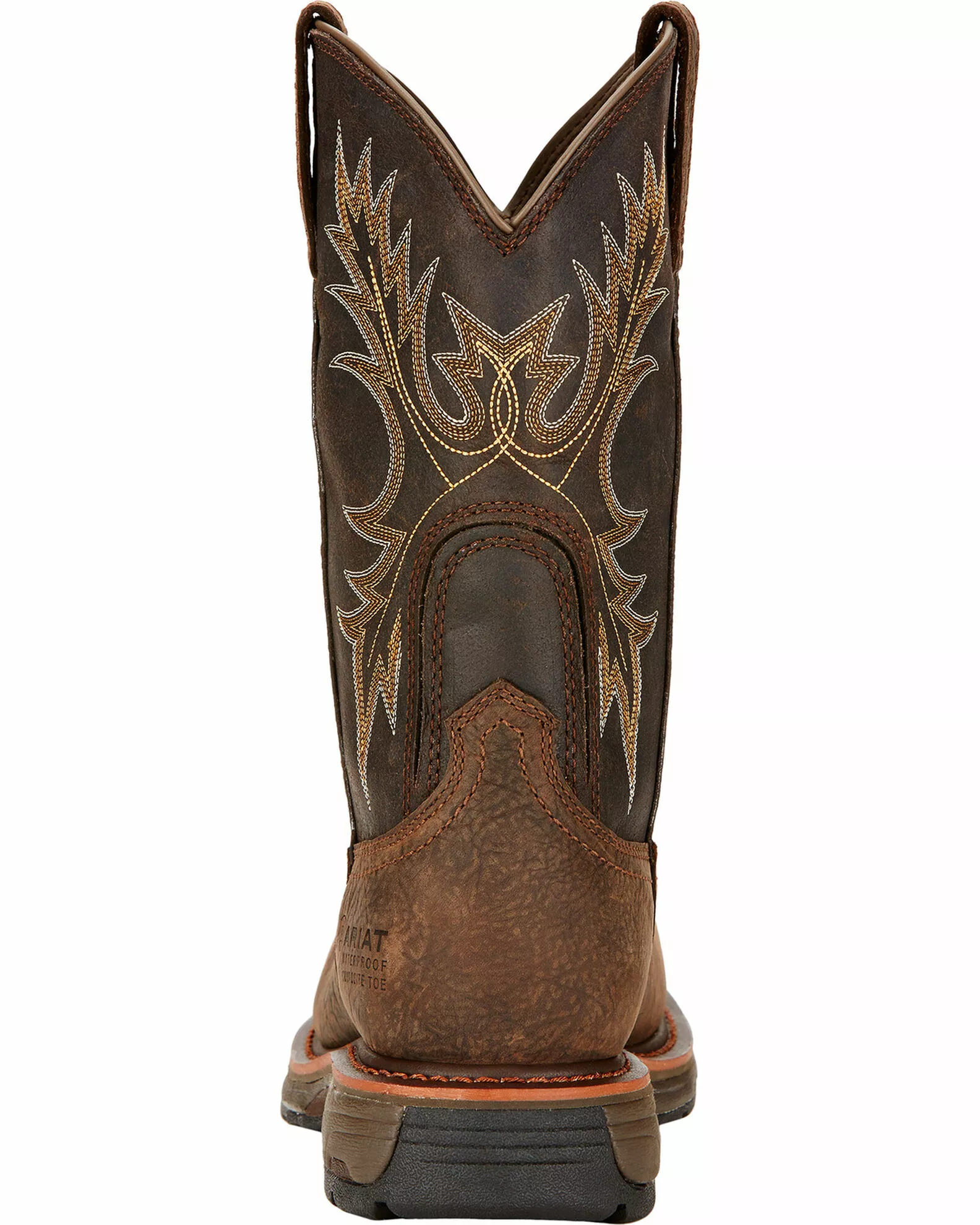 These Ariat Men’s Workhog work boots will keep your feet comfortable and safe through those long work days! These boots are made from durable, comfortable full-grain leather and they feature a shock absorbing EVA midsole. The tread design on the outsole is self-cleaning and non-tracking. The patented Duratread rubber outsole is oil and slip resistant for your safety. Ariat’s pending U-Turn entry system helps accommodate high arches with a hidden flexible gore panel in the back of the shaft that provides just enough ‘give’ to get feet past the turn with ease.