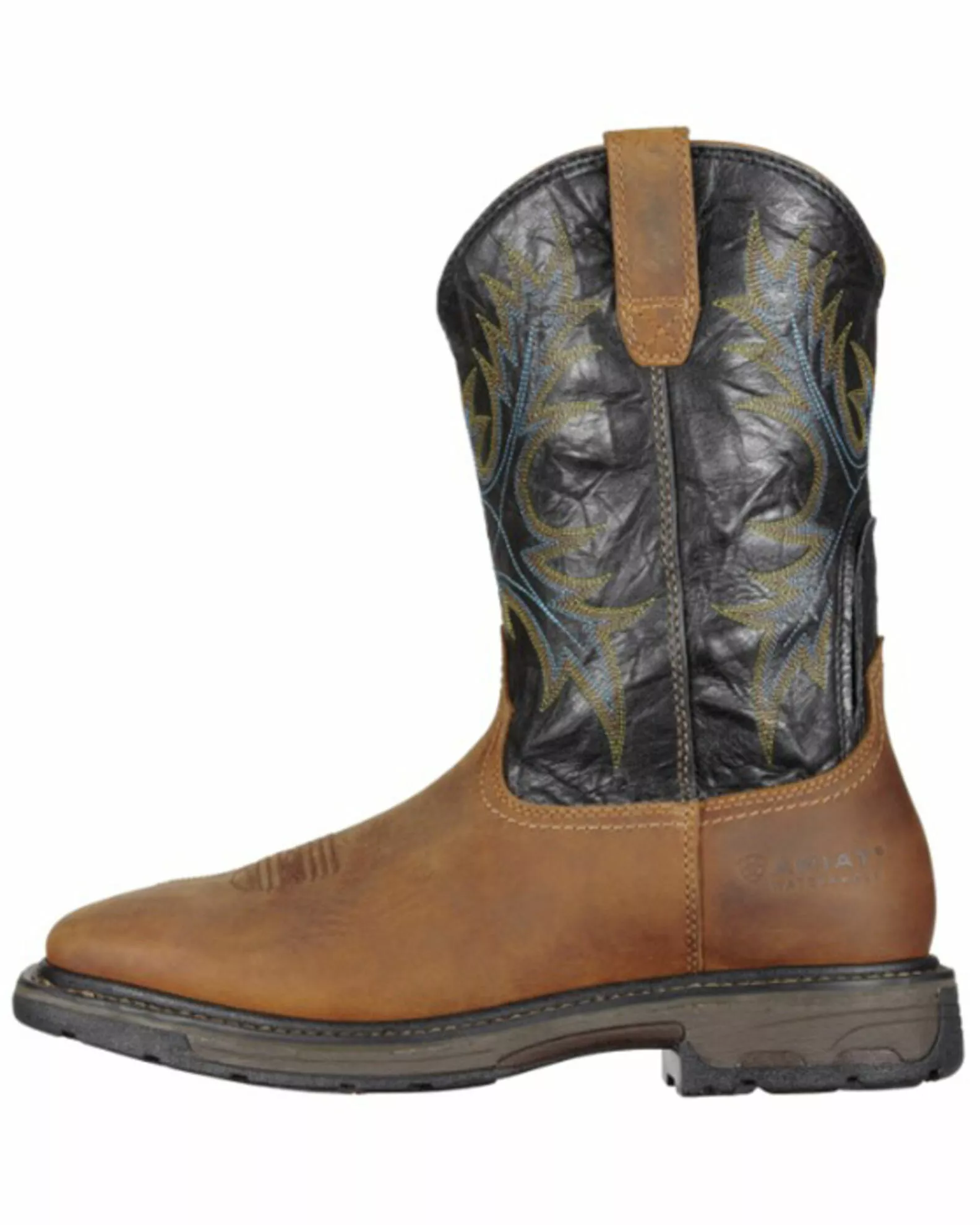 The bestselling Workhog profile by Ariat is now available in a waterproof construction with a protective steel toe. These popular boots are for the working cowboy with an abundant amount of technology to give the most comfortable working experience. The ATS Max technology gives an extra level of stability to the already stable and cushioned ATS footbed. The stability chassis promotes proper gait cycle while the EVA midsole is shock absorbing. The Duratread outsole is oil and slip-resistant as well as self-cleaning, with its non-tracking tread design. Lastly, the U-turn entry system allows for an easy entry. From the exterior to the interior to getting the boot on your foot?Ariat makes it easy for you.