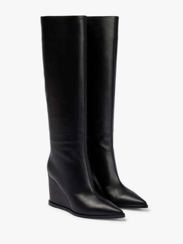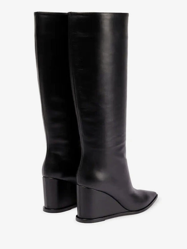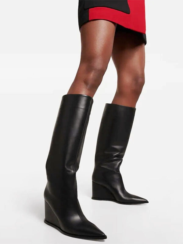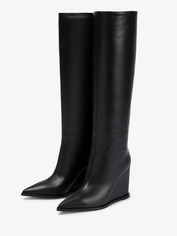 Be the first to review “Black Knee High Boots Cowhide Pointed Toe Wedge Heel Knee Length Boots” Cancel reply