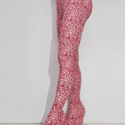 Women’s Leopard Print Thigh High Boots Stiletto Heel Elastic Fabric