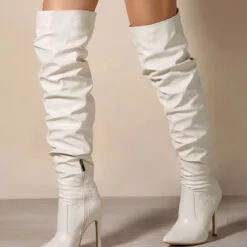 Women’s Slouch Boots Pointy Toe Stiletto Heel Wide Thigh High Boots