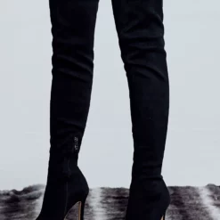 Women’s Stiletto Heel Thigh High Boots In Black Suede