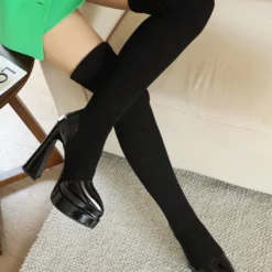 Women’s Thigh High Boots Platform Pointed Toe Stiletto Heel Elastic Over The Knee Boots