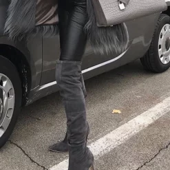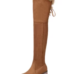Over The Knee Boots Womens Micro Suede Faux Fur Round Toe Chunky Heel Thigh High Boots