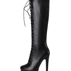 Platform Knee High Boots Womens Solid Color Lace Up Round Toe Stiletto Heel Boots
