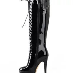 Platform Knee High Boots Womens Patent Lace Up Round Toe Stiletto Heel Winter Boots