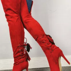 Over The Knee Boots Red Pointed Toe Zipper High Heel Thigh High Boots