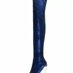 Over The Knee Boots Sequined Blue Pointed Toe Stiletto Heel Thigh High Boots
