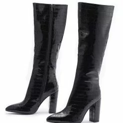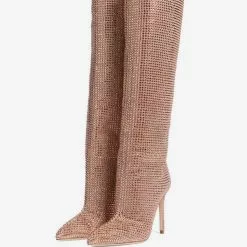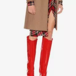 Red Knee High Boots Point Toe Bright Leather Stiletto Heel Knee Length Boots For Women