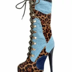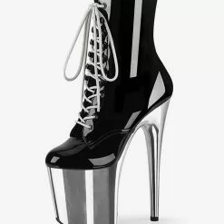Black 4 1/10″ High Heel Lace-Up Patent Leather Womens Sexy Boots