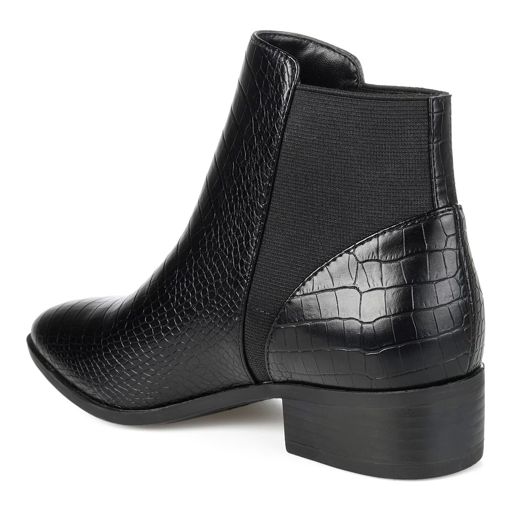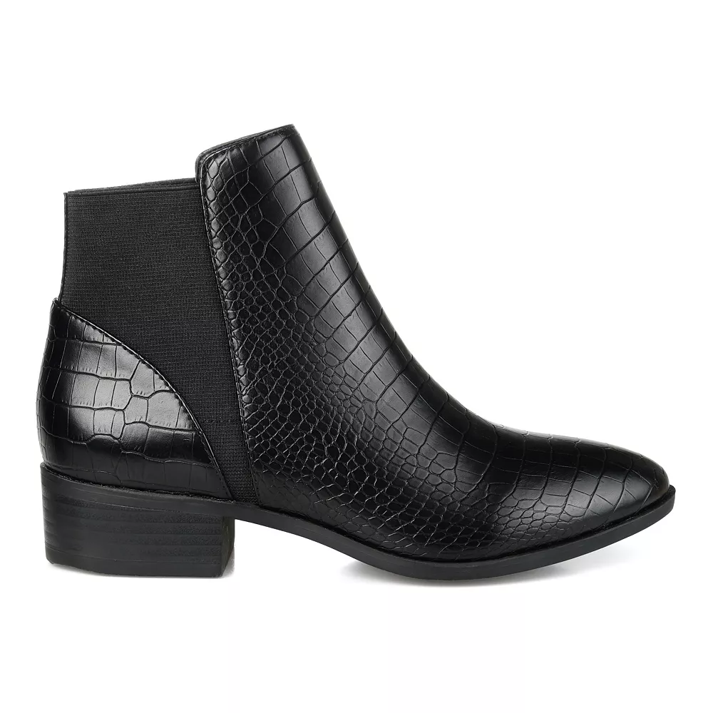 Step into style with these Journee Collection Cerise Tru Comfort Foam ankle boots with comfortable stretch goring and crocodile textured upper.