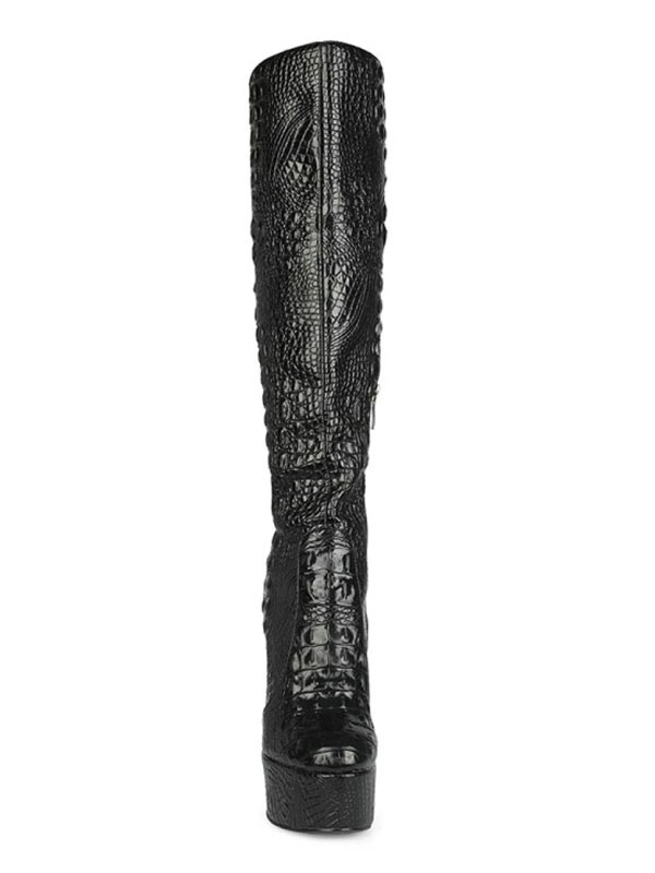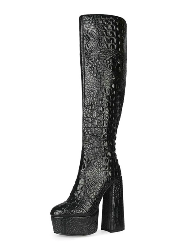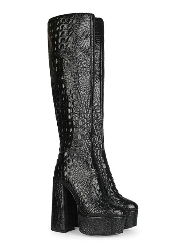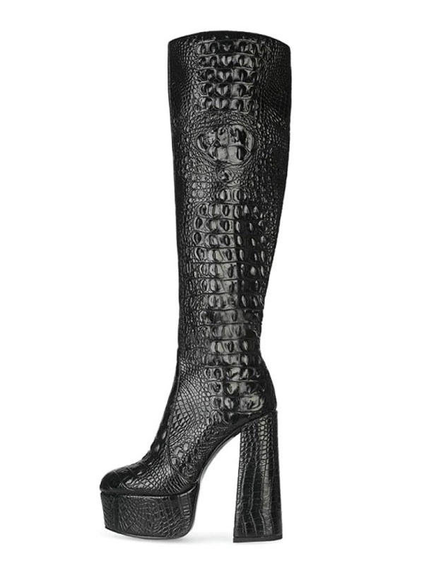 Be the first to review “Knee-High Boots Black Round Toe Chunky Heel Snakeskin Leather Knee Length Boots” Cancel reply