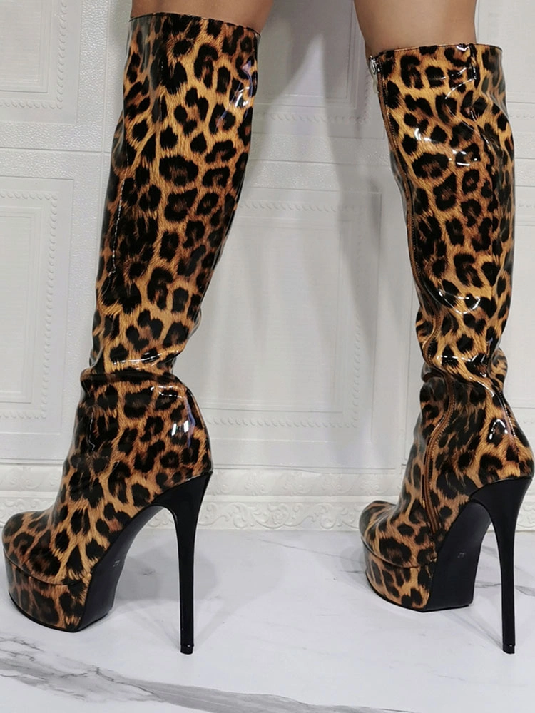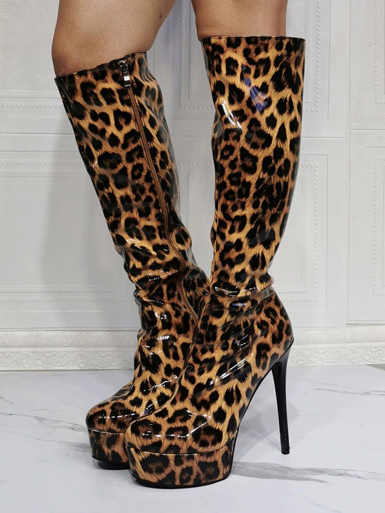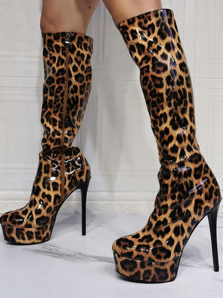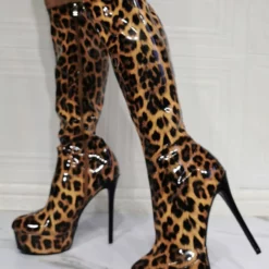 Be the first to review “Knee High Boots Patent PU Upper Leopard Round Toe Stiletto Bright Leather Heel Sexy High Heel Boots” Cancel reply