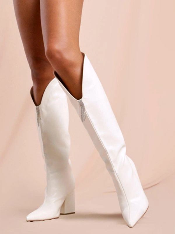 Be the first to review “Knee-High Boots PU Leather Black Pointed Toe Chunky Heel 4.1″ Woman Knee Length Boots” Cancel reply