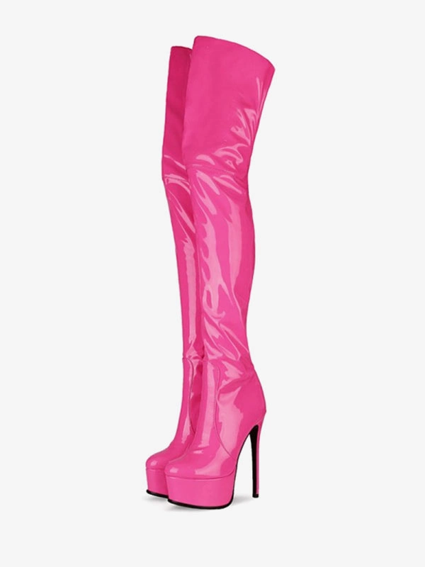Be the first to review “Over The Knee Boots Leather Platform Round Toe Bright Leather Zip Up High Heel Thigh High Boots” Cancel reply
