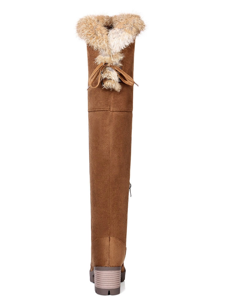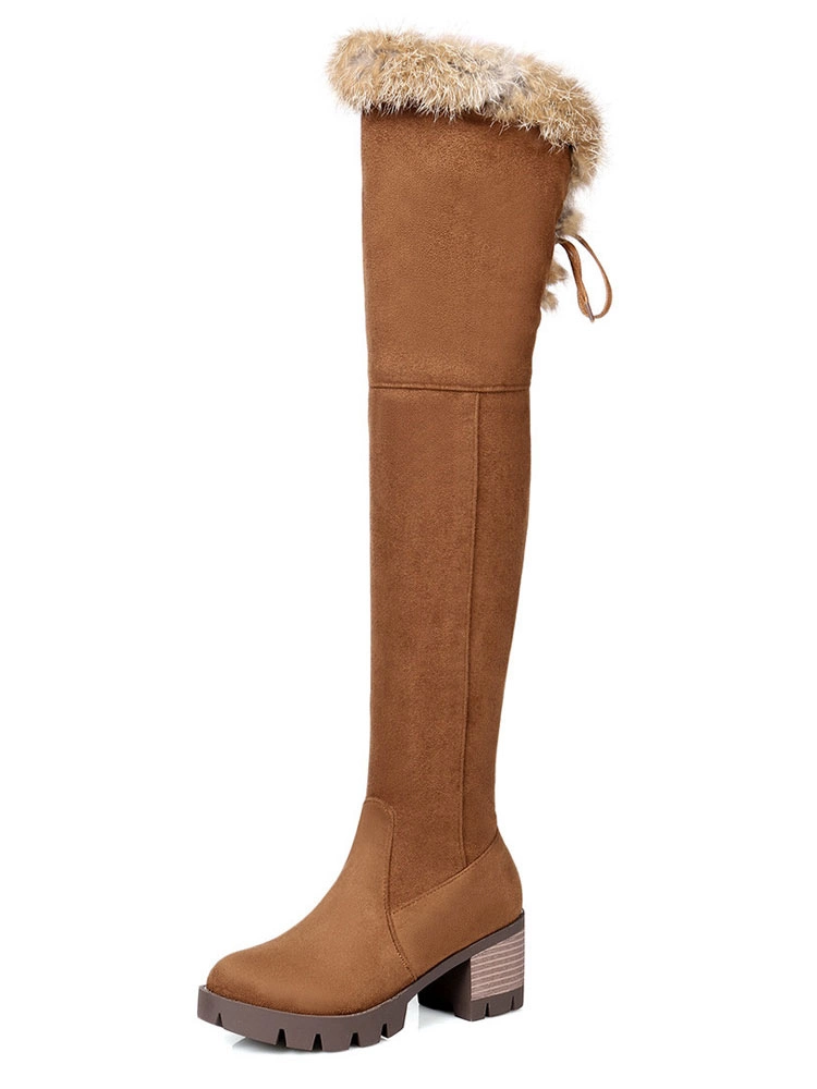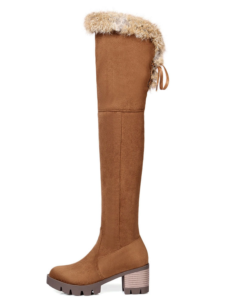 Be the first to review “Over The Knee Boots Womens Micro Suede Faux Fur Round Toe Chunky Heel Thigh High Boots” Cancel reply