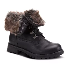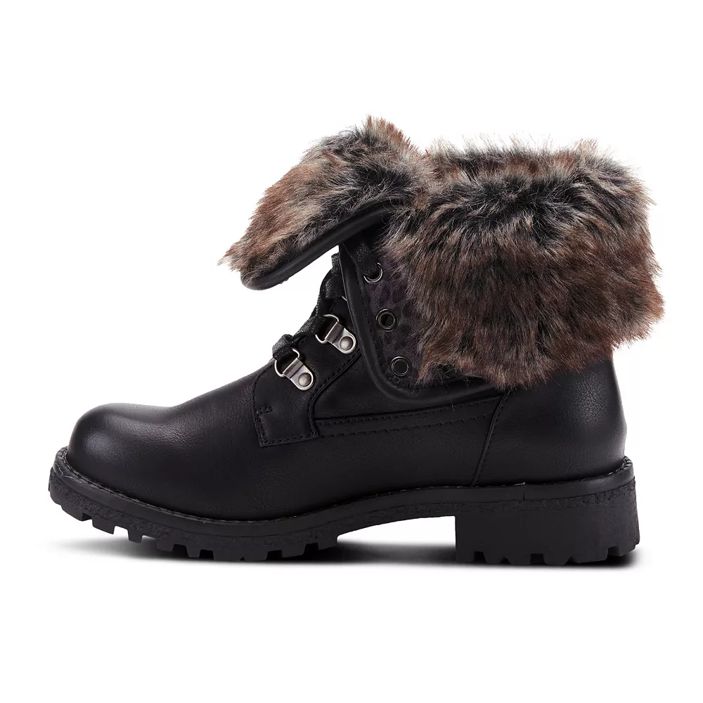 - Foldable cuff design revealing cozy and warm faux fur lining