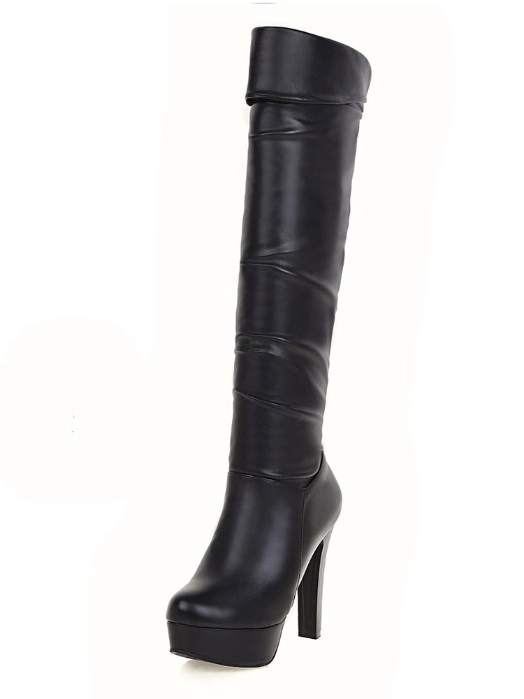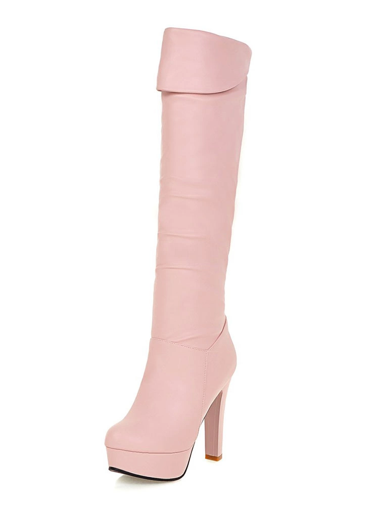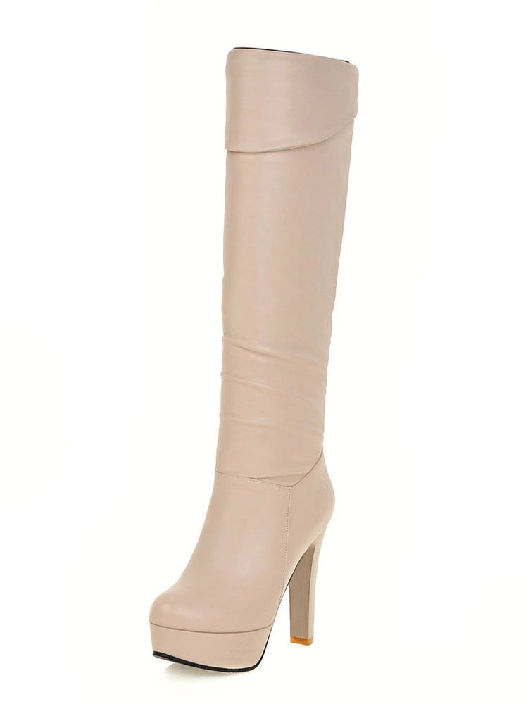 Be the first to review “Platform Knee High Boots Womens Almond Toe Chunky Bright Leather Heel Boots” Cancel reply