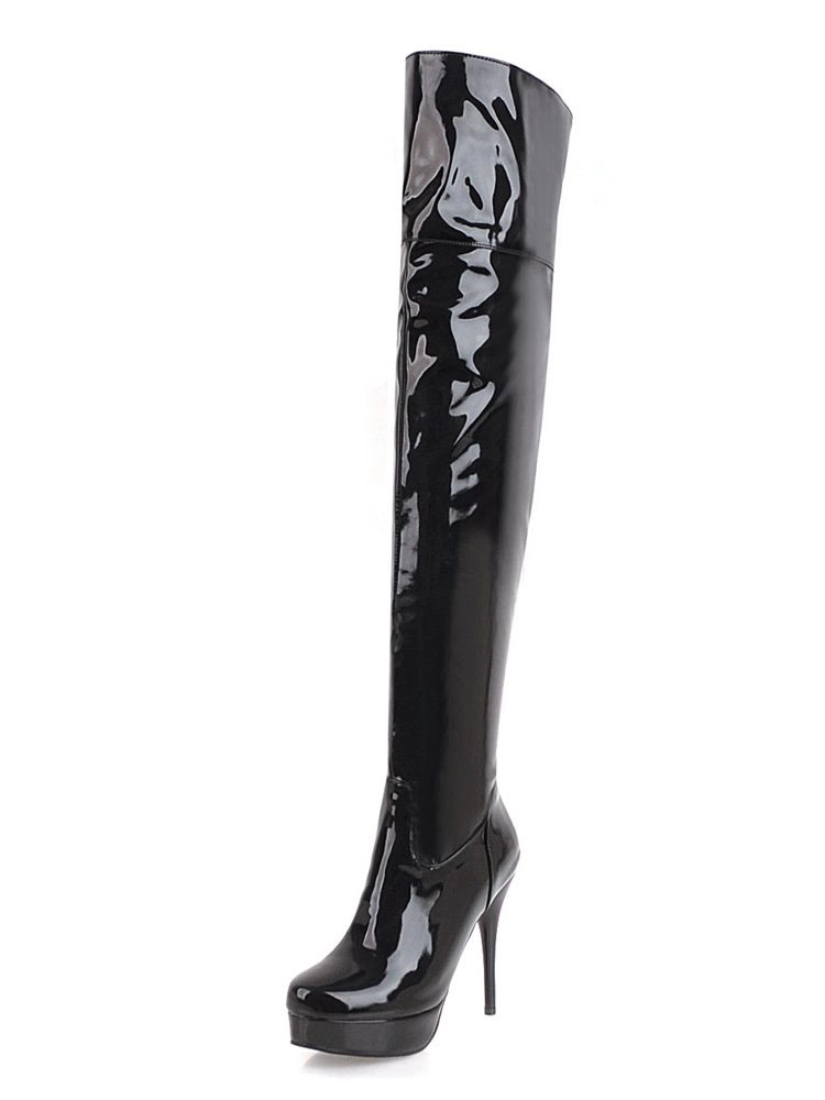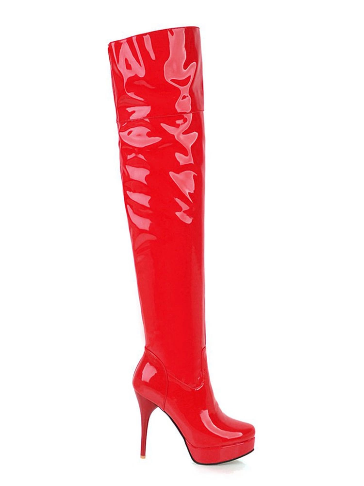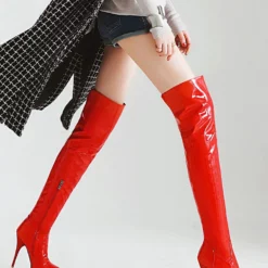 Be the first to review “Platform Thigh High Boots Womens Almond Toe Stiletto Bright Leather Heel Over The Knee Boots” Cancel reply