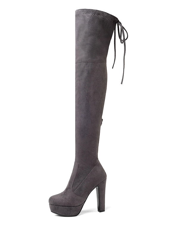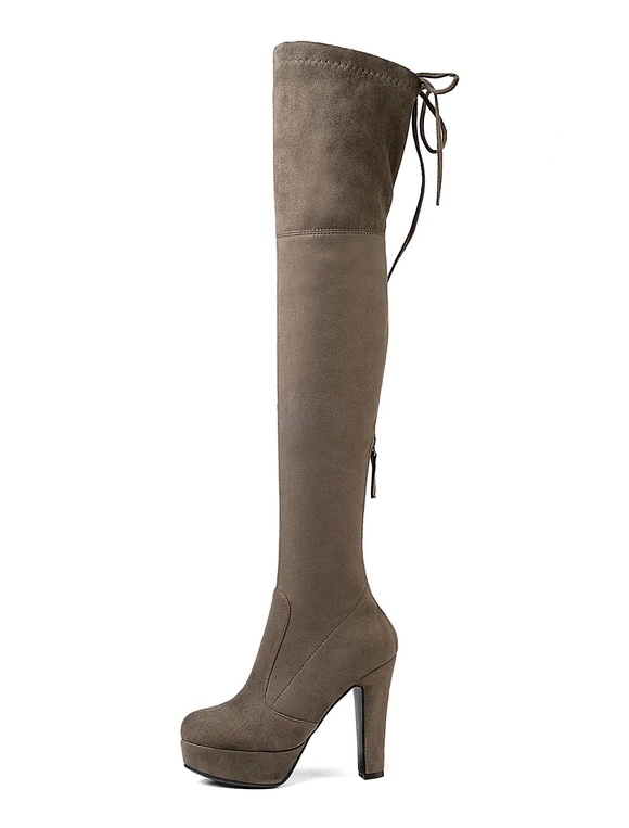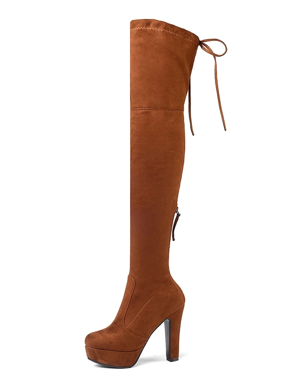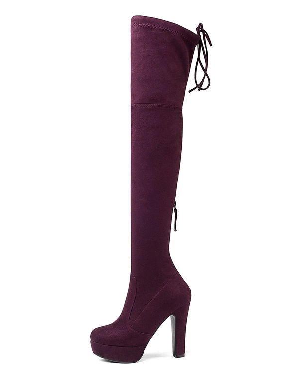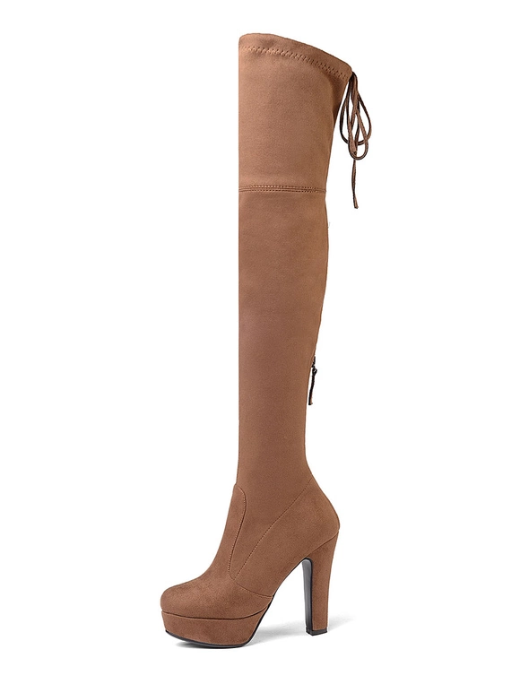 Be the first to review “Platform Thigh High Boots Womens Elastic Fabric Lace Up Almond Toe Chunky Heel Over The Knee Boots” Cancel reply