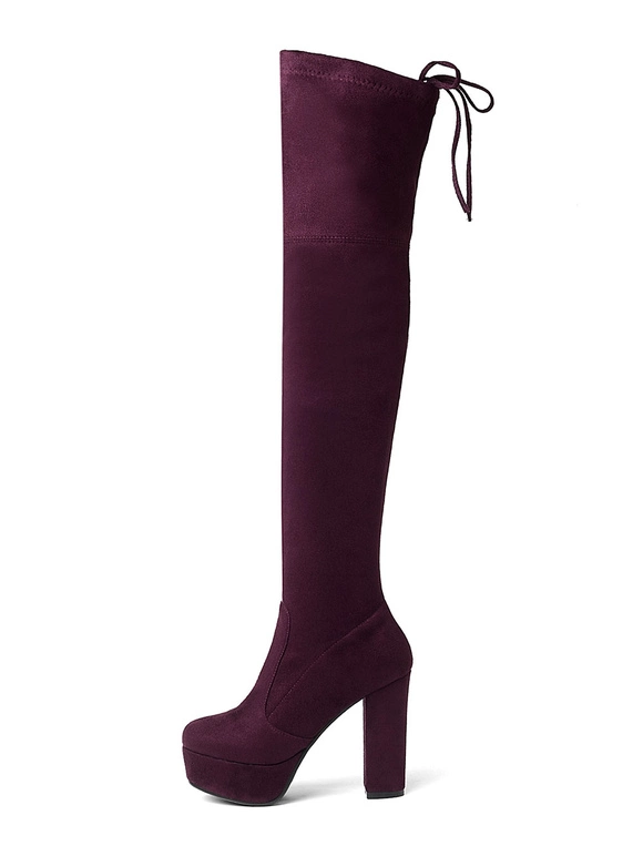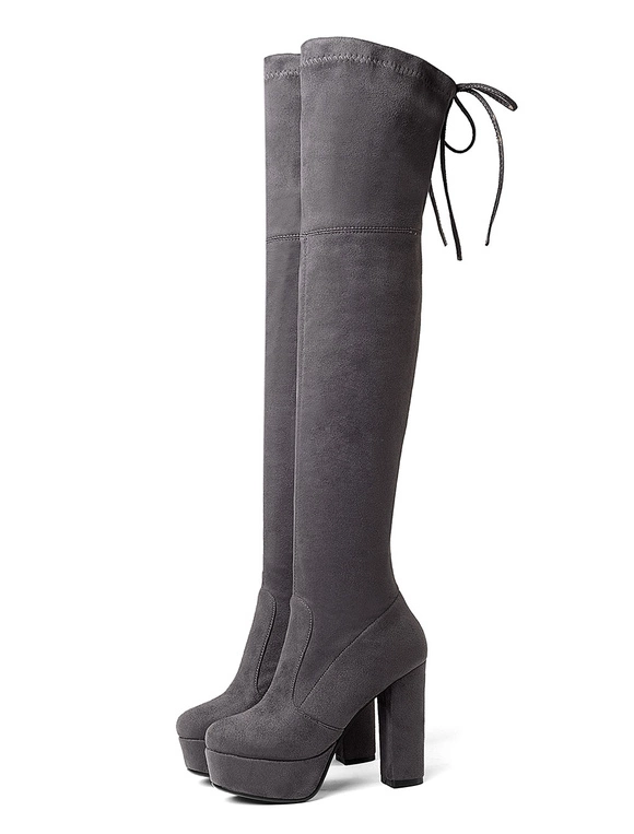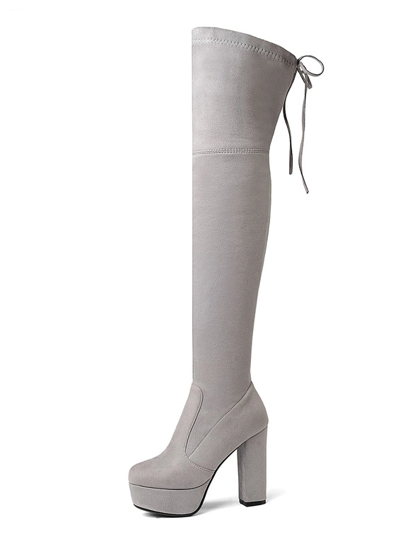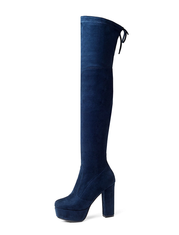 Be the first to review “Platform Thigh High Boots Womens Elastic Fabric Lace Up Almond Toe Chunky Heel Over The Knee Boots” Cancel reply