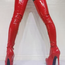 Women’s Platform Stiletto Heel Thigh High Heel Boots In Red Patent Bright Leather