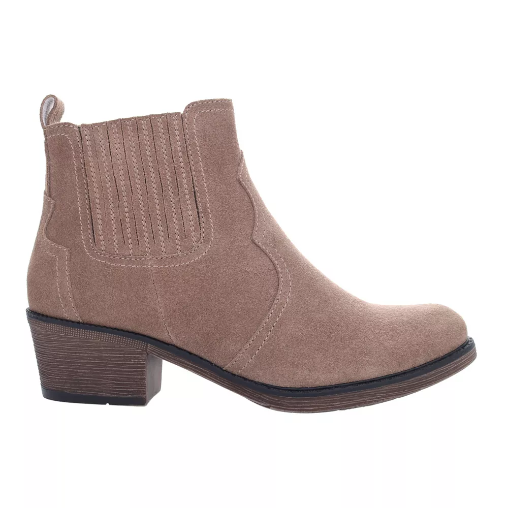 - Suede upper with traditional western styling and hidden side goring for a comfortable fit