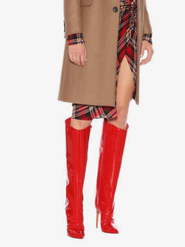 Be the first to review “Red Knee High Boots Point Toe Bright Leather Stiletto Heel Knee Length Boots For Women” Cancel reply