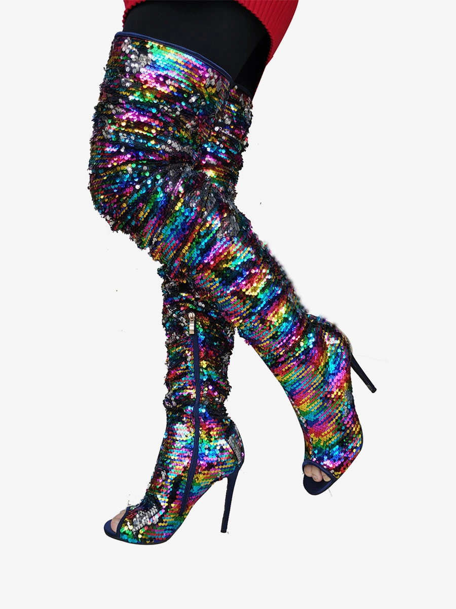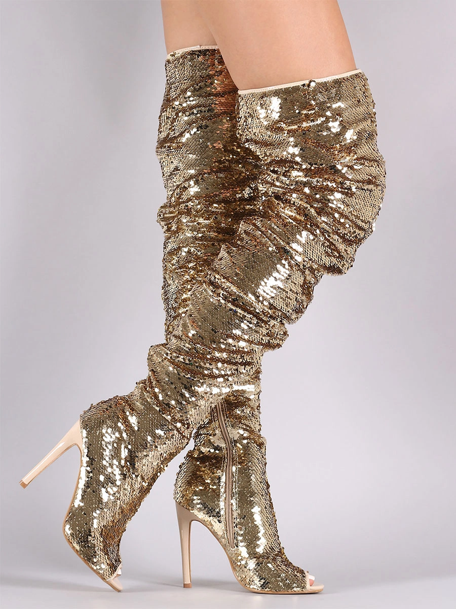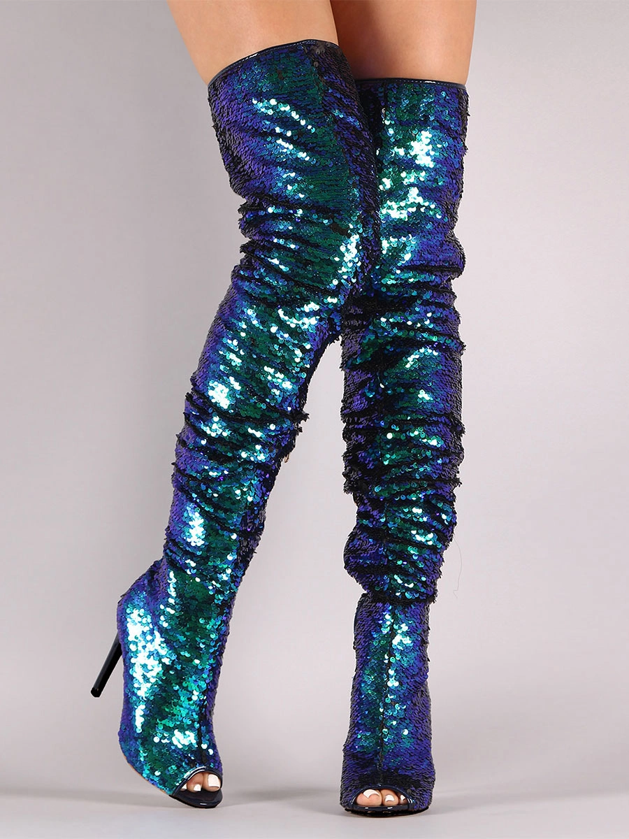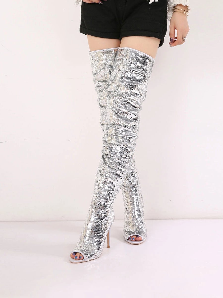 Be the first to review “Sequin Over The Knee Boots Women Peep Toe Stiletto Heel Thigh High Boots” Cancel reply