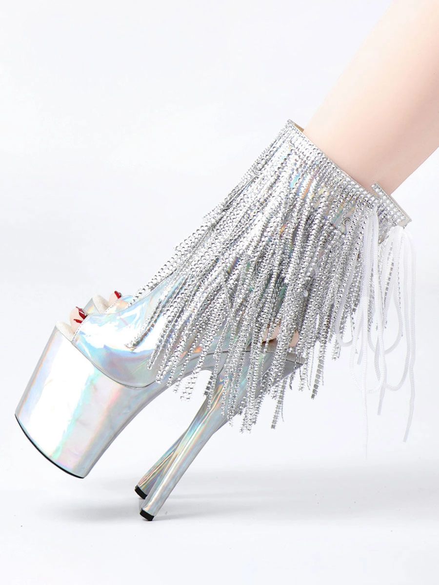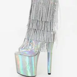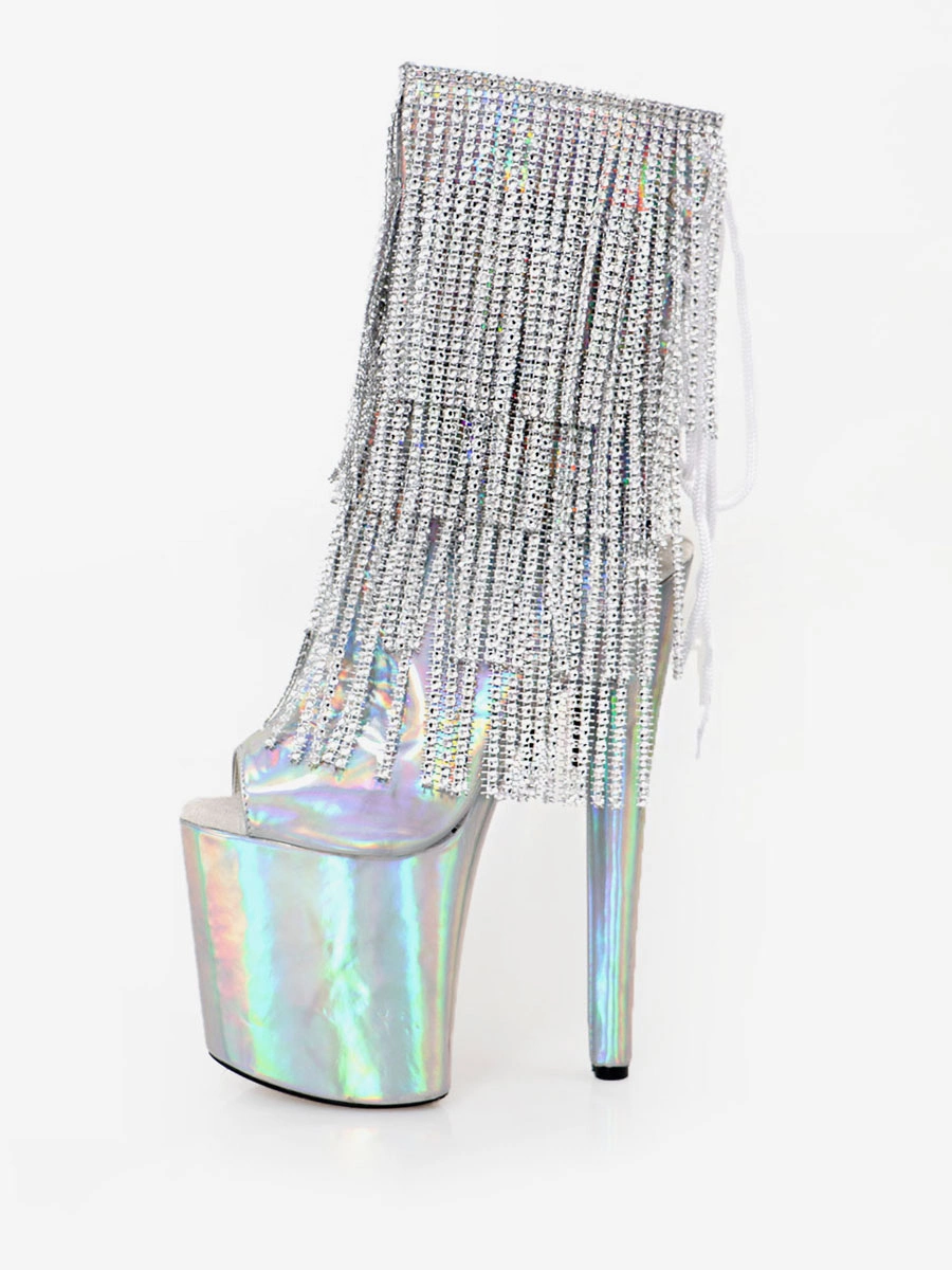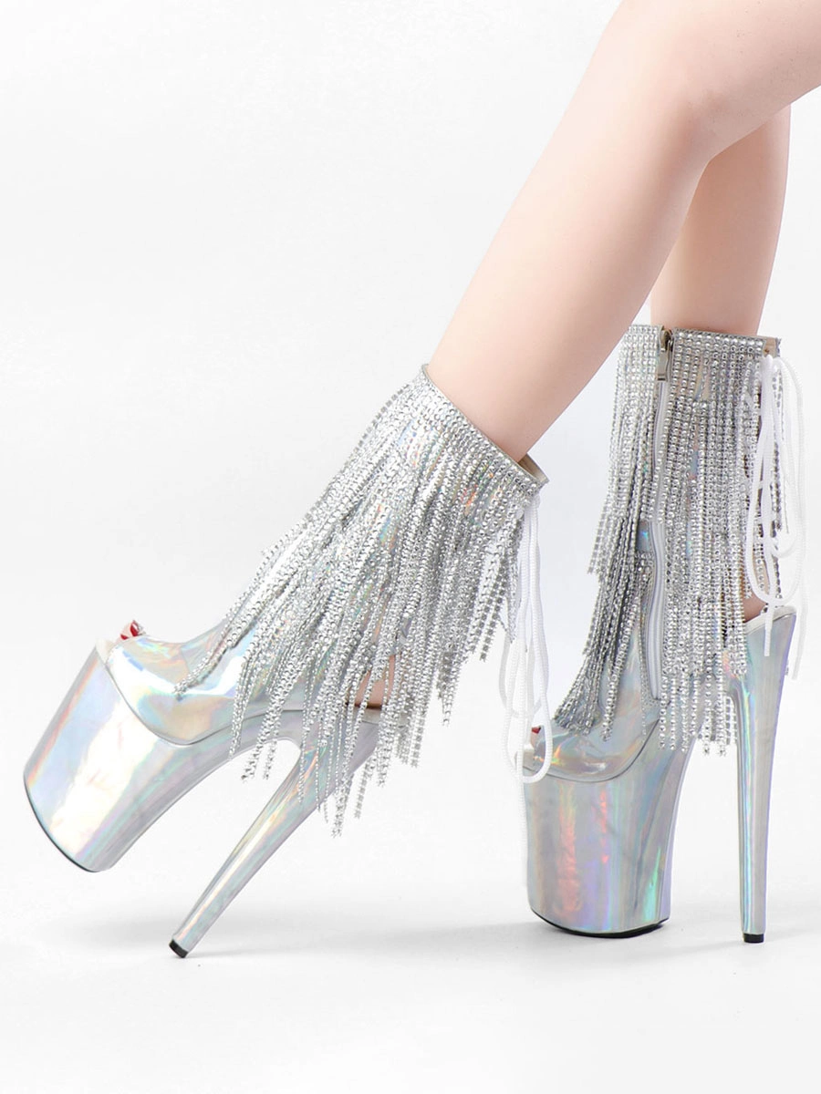 Be the first to review “Sexy High Heel Boots Peep Toe Lace Up Printed Stiletto Heel Rave Club Silver Thigh High Boots Over The Knee Boots” Cancel reply