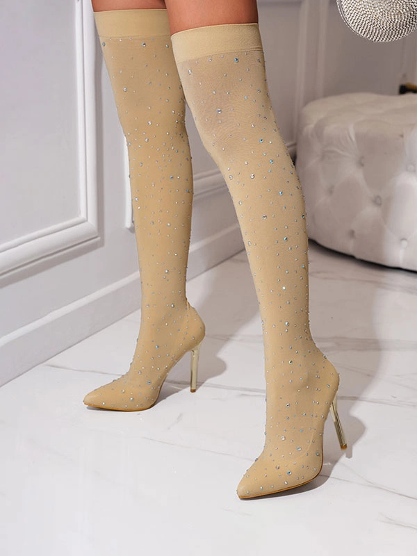 Be the first to review “Sexy High Heel Boots Pointed Toe Rhinestones Street Wear Black Thigh High Boots Over The Knee Boots” Cancel reply