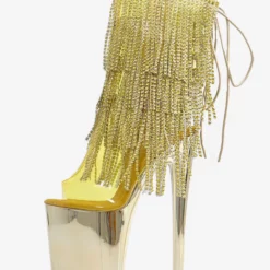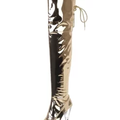 Women Sexy Boots Peep Toe Lace Up Printed Stiletto Heel Rave Club Gold Thigh High Boots Over The Knee Boots