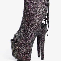Women Sexy Boots Open Toe Zipper Sequins Stiletto Heel Rave Club Silver Thigh High Boots Over The Knee Boots