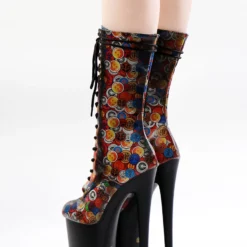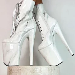 Women Sexy Boots Plus Size Round Toe Zipper Buckle Artwork Stiletto Heel Platform Sky High Pole Dance Shoes