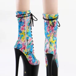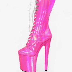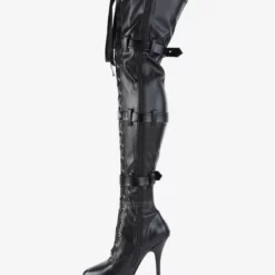 Women Sexy Boots Round Toe Lace Up Zipper Stiletto Heel Rave Club Black Thigh High Boots