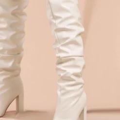 Women’s Chunky Heel PU Leather Thigh High Boots