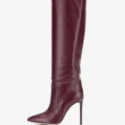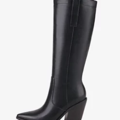 Women’s Black Boots PU Leather Pointed Toe Stiletto High Heel Knee High Boots