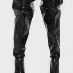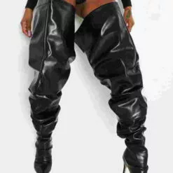 Women’s Wide Slouch Thigh High Heel Boots In Black Bright Leather