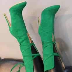 High Heel Booties Women Ankle Boots Hunter Green Pointed Toe Booties