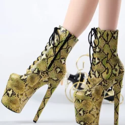 Pole Dance Shoes Women’s Lace Up Geometric Print Platform High Heel Sexy Ankle Boots