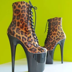 Sexy High Heel Boots Leopard Round Toe Zipper Buckle Platform Lace Up Plus Size Sexy Boots