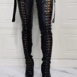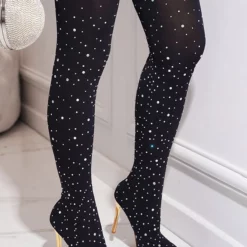 Sexy High Heel Boots Pointed Toe Sequins Stiletto Heel Rave Club Black Thigh High Boots