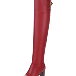 Thigh High Boots Womens Solid Color Round Toe Chunky Heel Over The Knee Boots