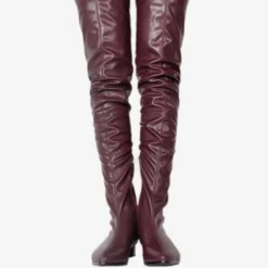 Thigh High Boots Womens Solid Color Pointed Toe Stiletto Bright Leather Heel Over The Knee Boots