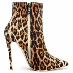 Women Ankle Boots Pointed Toe Leopard Print Stiletto Heel Micro Suede Upper High Heel Booties