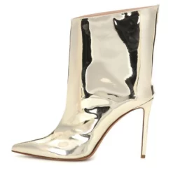 Women Ankle Boots Leather Light Gold Pointed Toe Bright Leather Stiletto Heel High Heel Boots