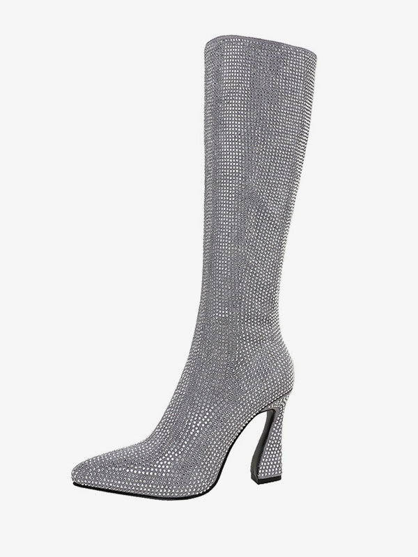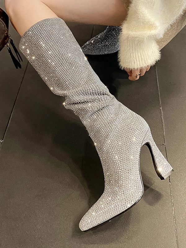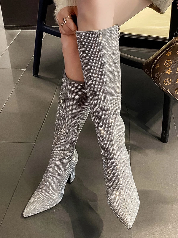 Be the first to review “Silver Knee High Boots Women Rhinestones Pointed Toe Spool Heel Party Boots” Cancel reply