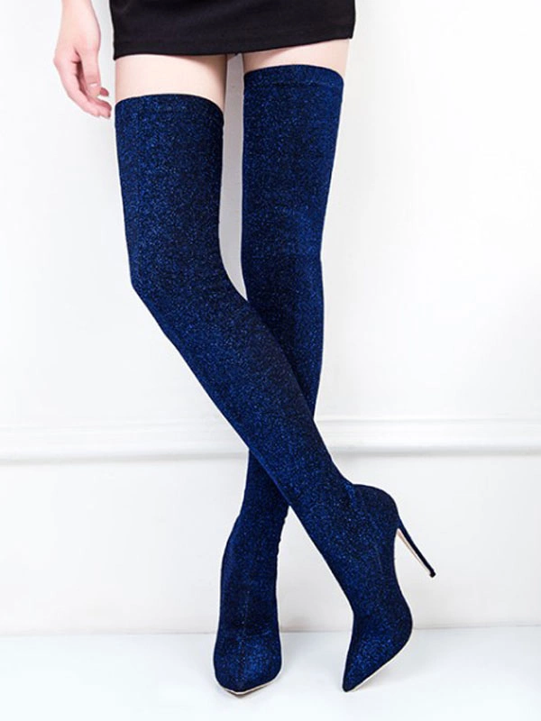 Be the first to review “Stretch Thigh High Boots Womens Imitated Silk Solid Color Pointed Toe Stiletto Heel Over The Knee Boots” Cancel reply