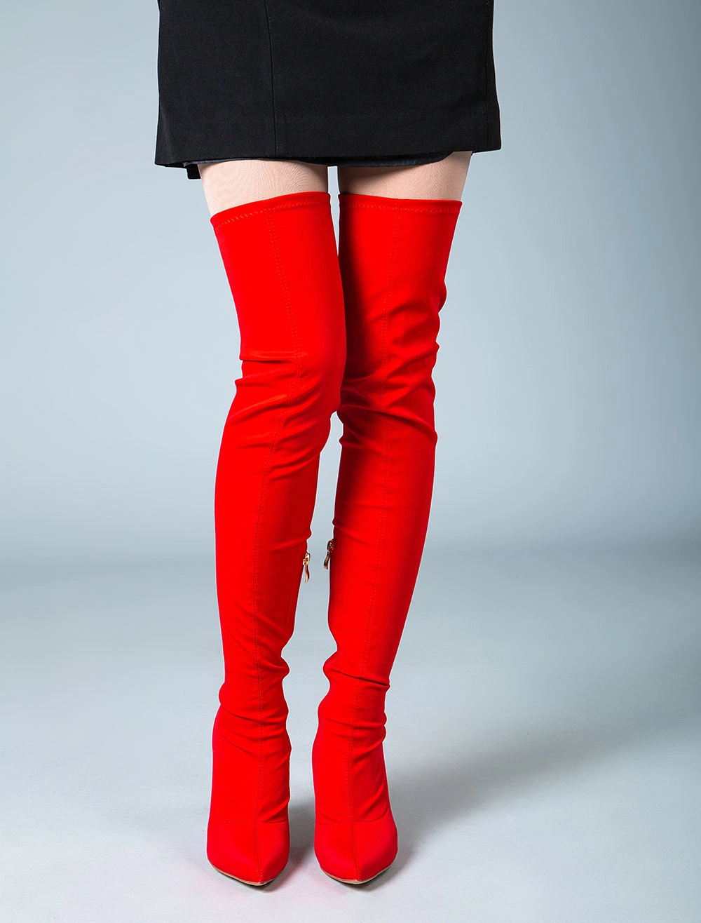 Be the first to review “Thigh High Boots Womens Elastic Fabric Pointed Toe Stiletto Heel Over The Knee Boots” Cancel reply